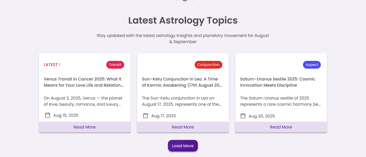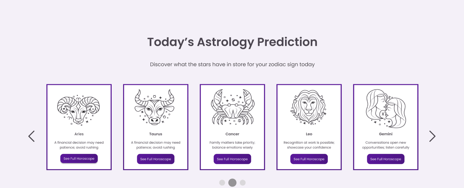Redesigned an astrology website to improve usability by simplifying navigation, reducing clutter, and creating a modern layout.